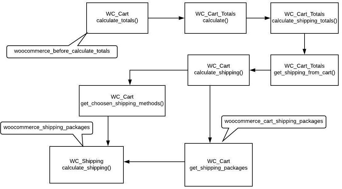 Shipping taxes are the most unique of the tax calculation scenarios, with the WC_Shipping Method calling WC_Tax, instead WC_Cart_Totals calling WC_Tax directly